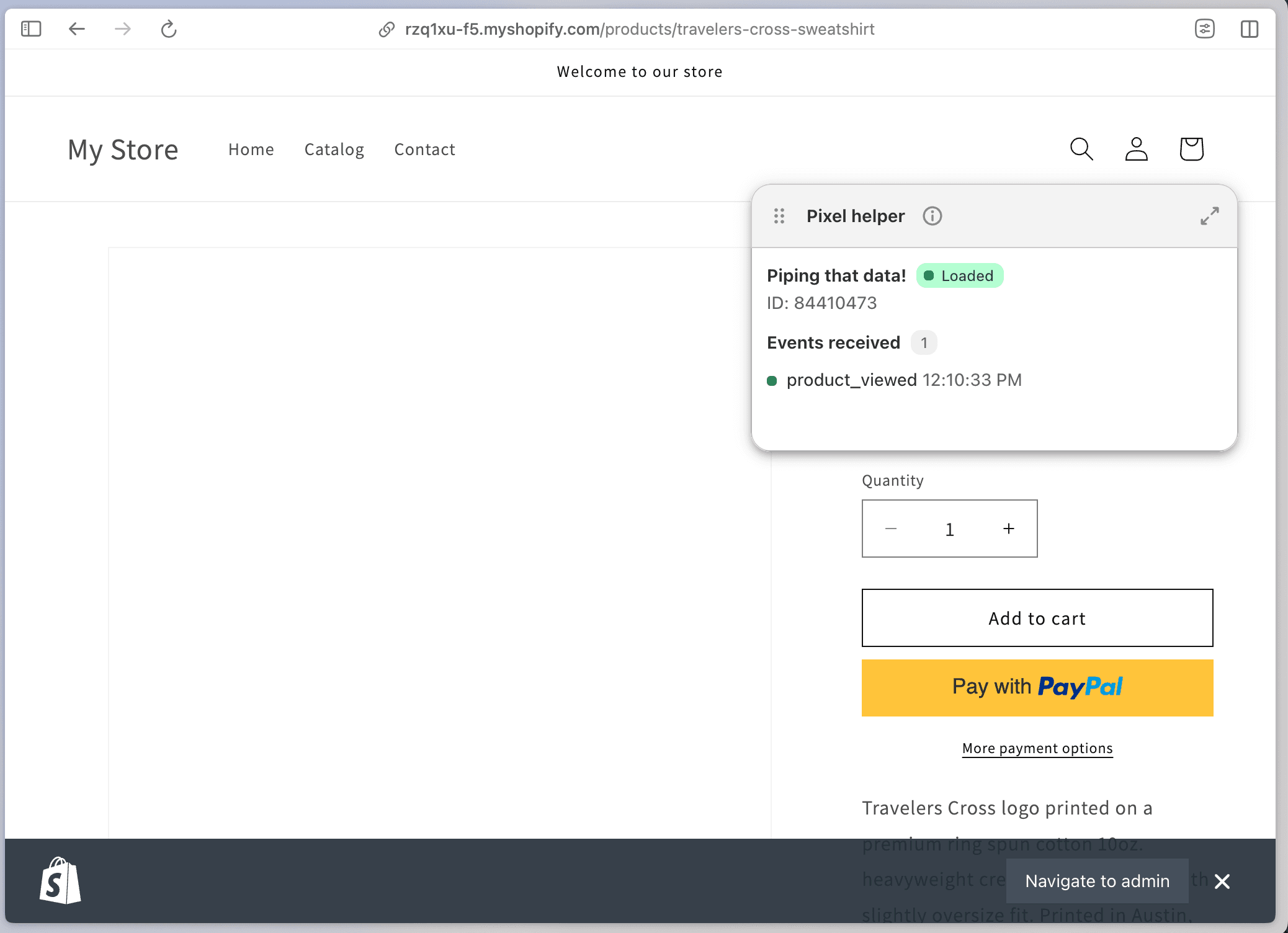 Click “Test” to confirm the Shopify Web Pixel API is connected (next, we’ll confirm Mixpanel is receiving those events from Shopify)